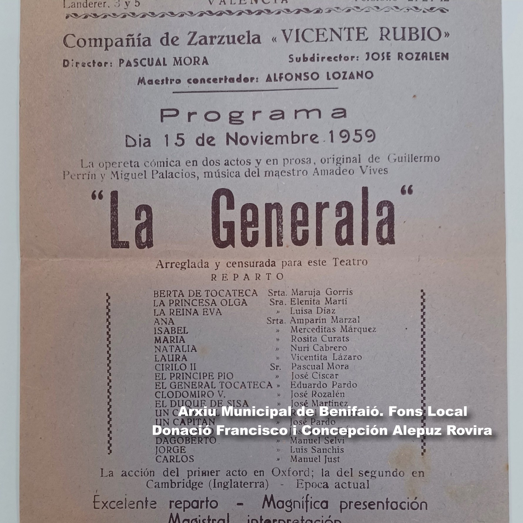 És el cas de l’Ajuntament de Benifaió, que ha acceptat la donació de l’arxiu personal de Francesc Marí Piles, amb una preciosa documentació, especialmente de la gestió com a director del teatre aficionat benifaionenc en la segona meitat del segle XX, així com de l’arxiu fotogràfic Maiques, que conté els negatius de la família, des del seu establiment a Benifaió en 1952, una magnífica oportunitat per a enrriquir la nostra memòria documental i gràfica.