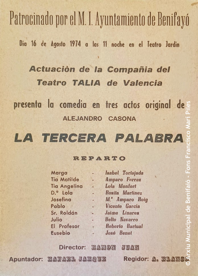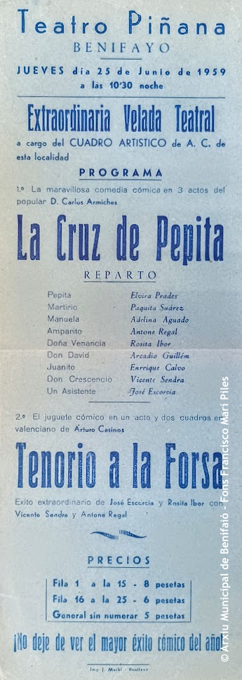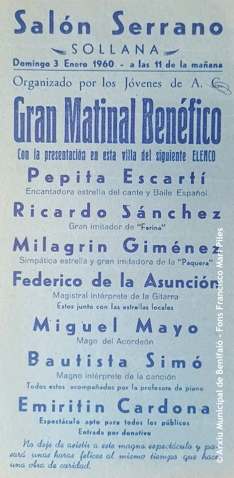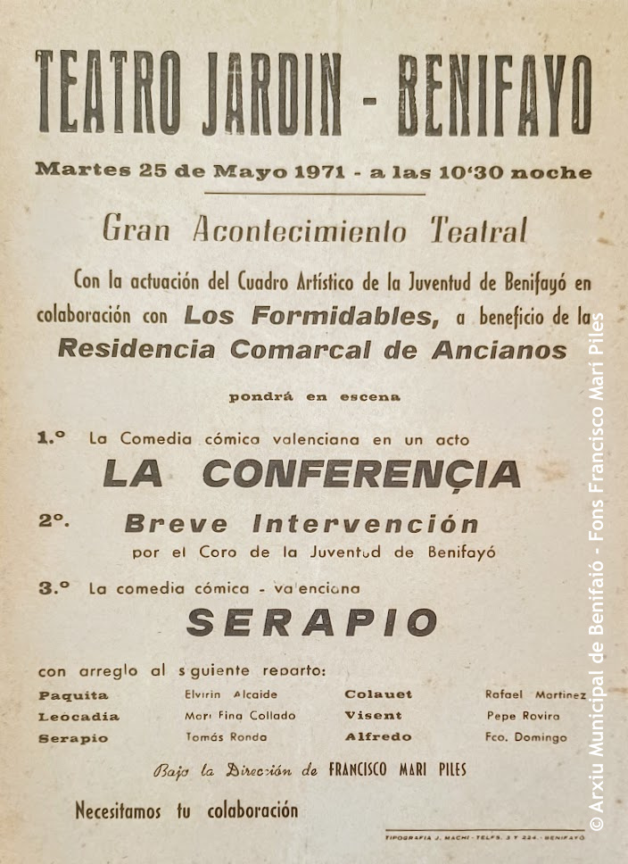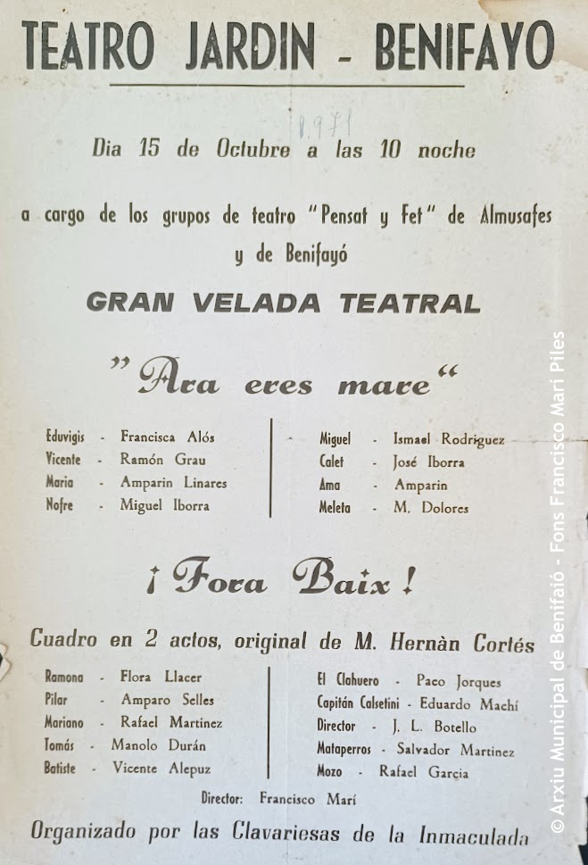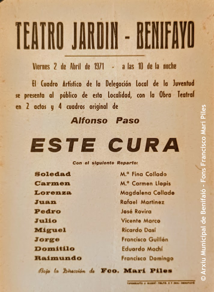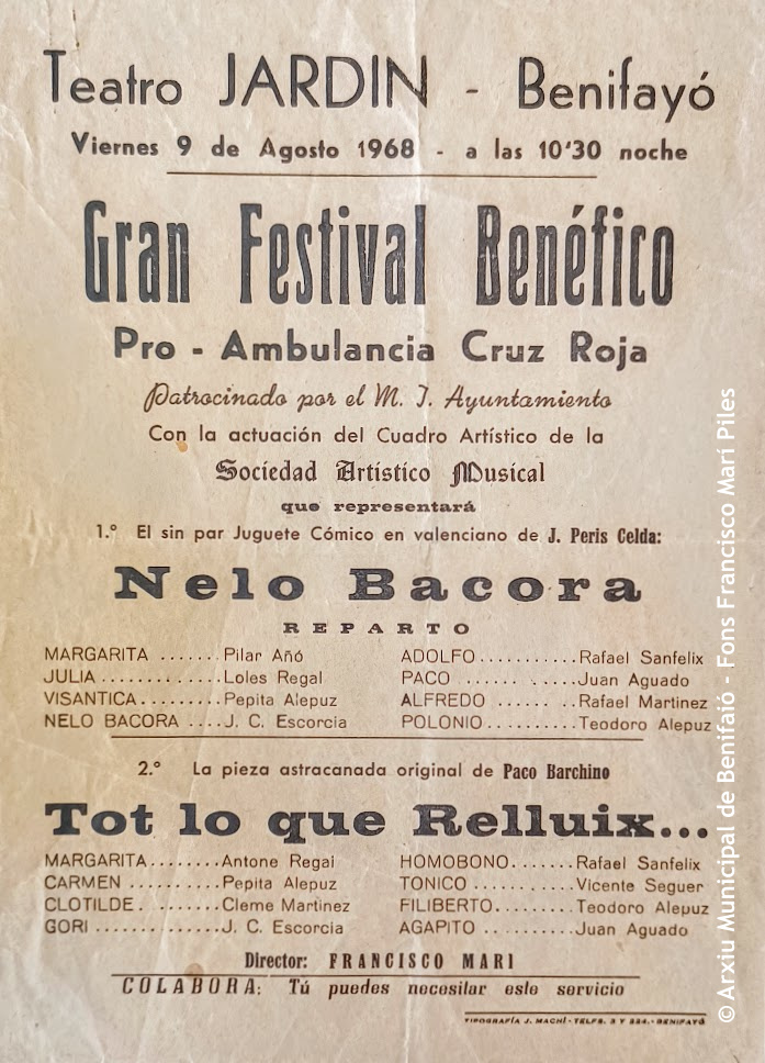 El fons personal de Francesc Marí Piles (Benifaió, 1925-2007) va ser el primer en entrar a formar part dels Fons Incorporats a l’Arxiu Municipal de Benifaió.